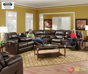 SIMMONS 50660 BLACKJACK BROWN LEATHER SECTIONAL SOFA RECLINER Black Leather Motion Home Theater Sectional Sofa Made in ultra plush bonded leather.